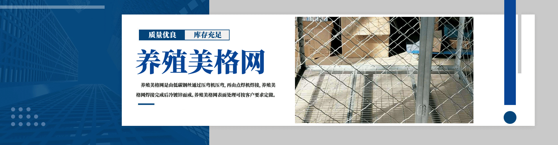 美格网对气候没有太大要求。美格网是把焊好的美格网片用氩弧焊机焊接在提前做好的框架上。美格网 对边孔径一般为6.5cm-14cm。使用的铁丝粗度一般从3.5mm-6mm。铁丝材质一般为Q235低碳铁丝。...